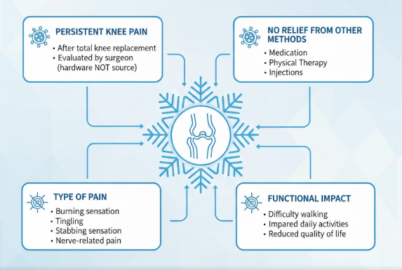 In conclusion, cryoneurolysis offers a promising, minimally invasive option for patients experiencing persistent pain after knee replacement, helping restore comfort without additional surgery or long-term medication use.